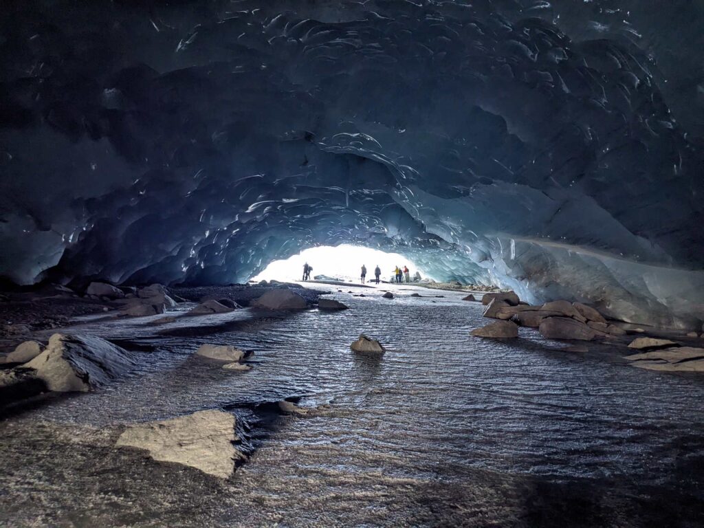 Der Morteratsch Gletscher im Engadin und seine einzigartigen Eishöhlen (siehe Bild unten).